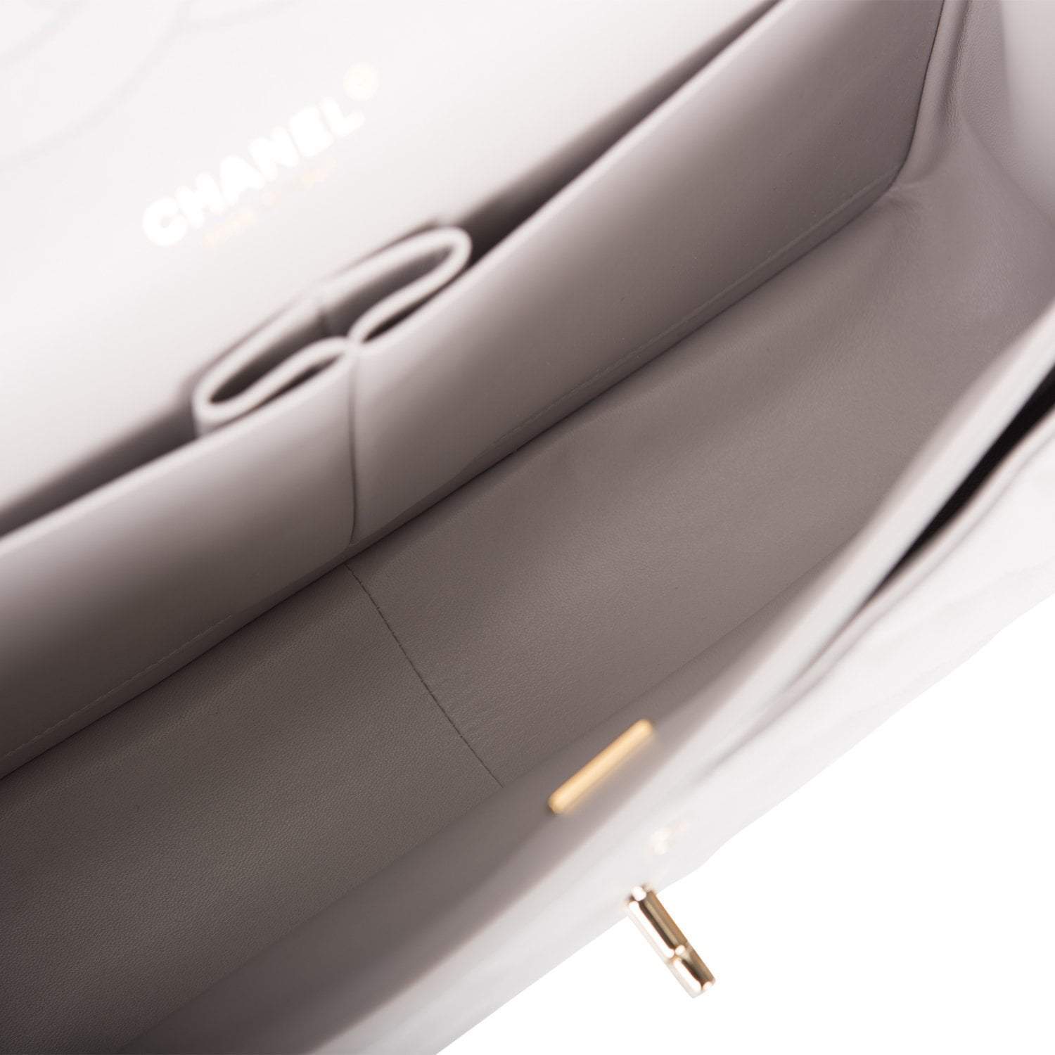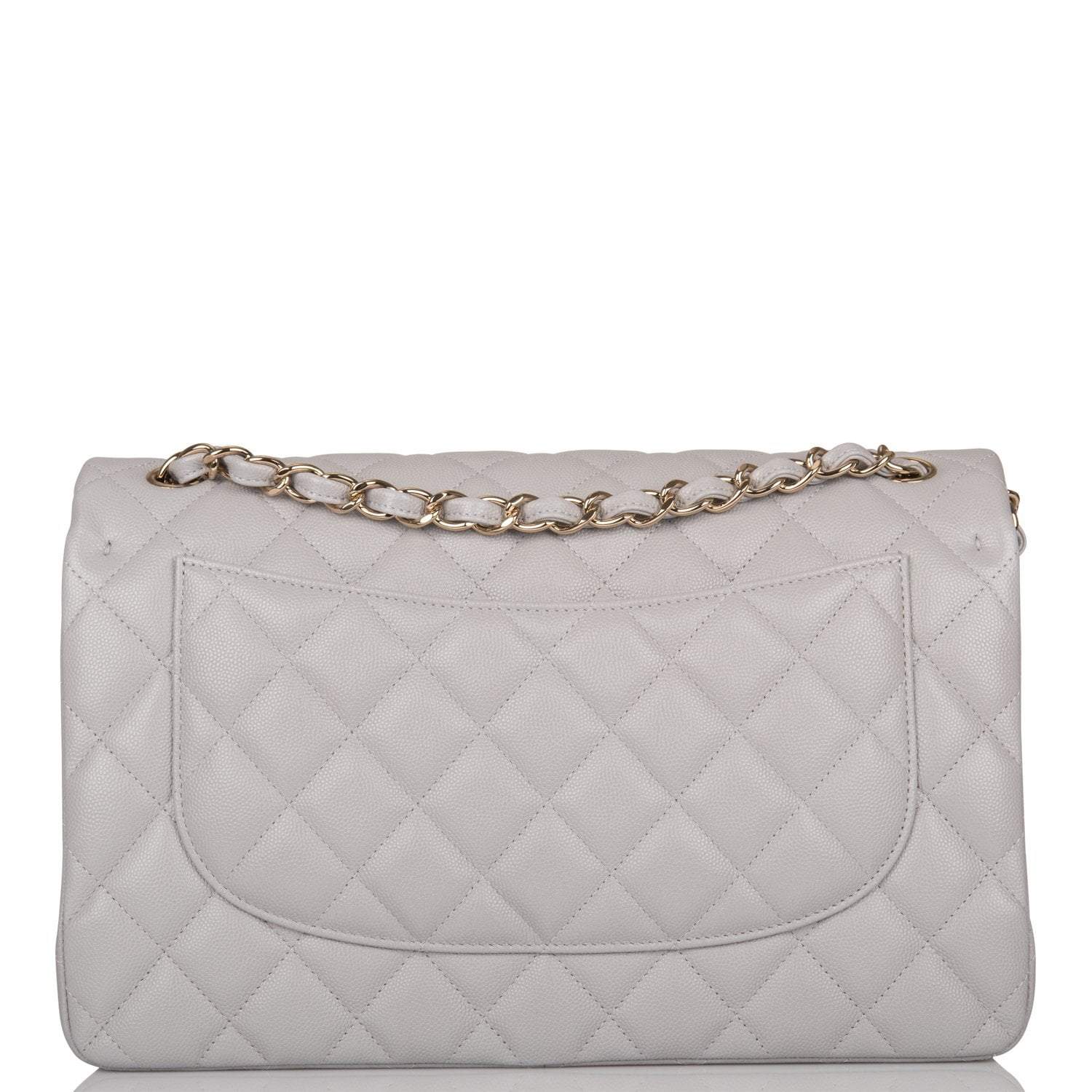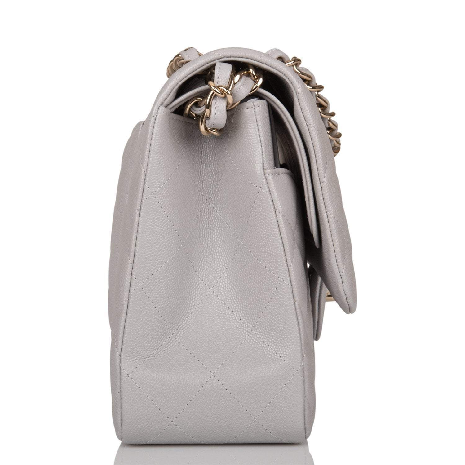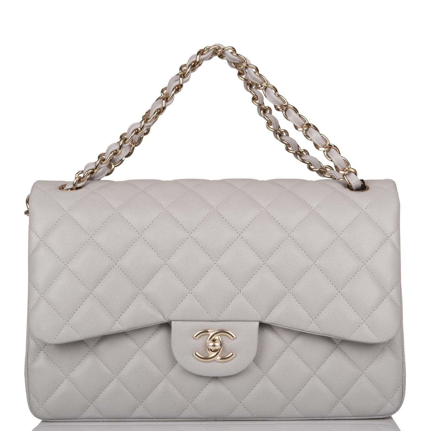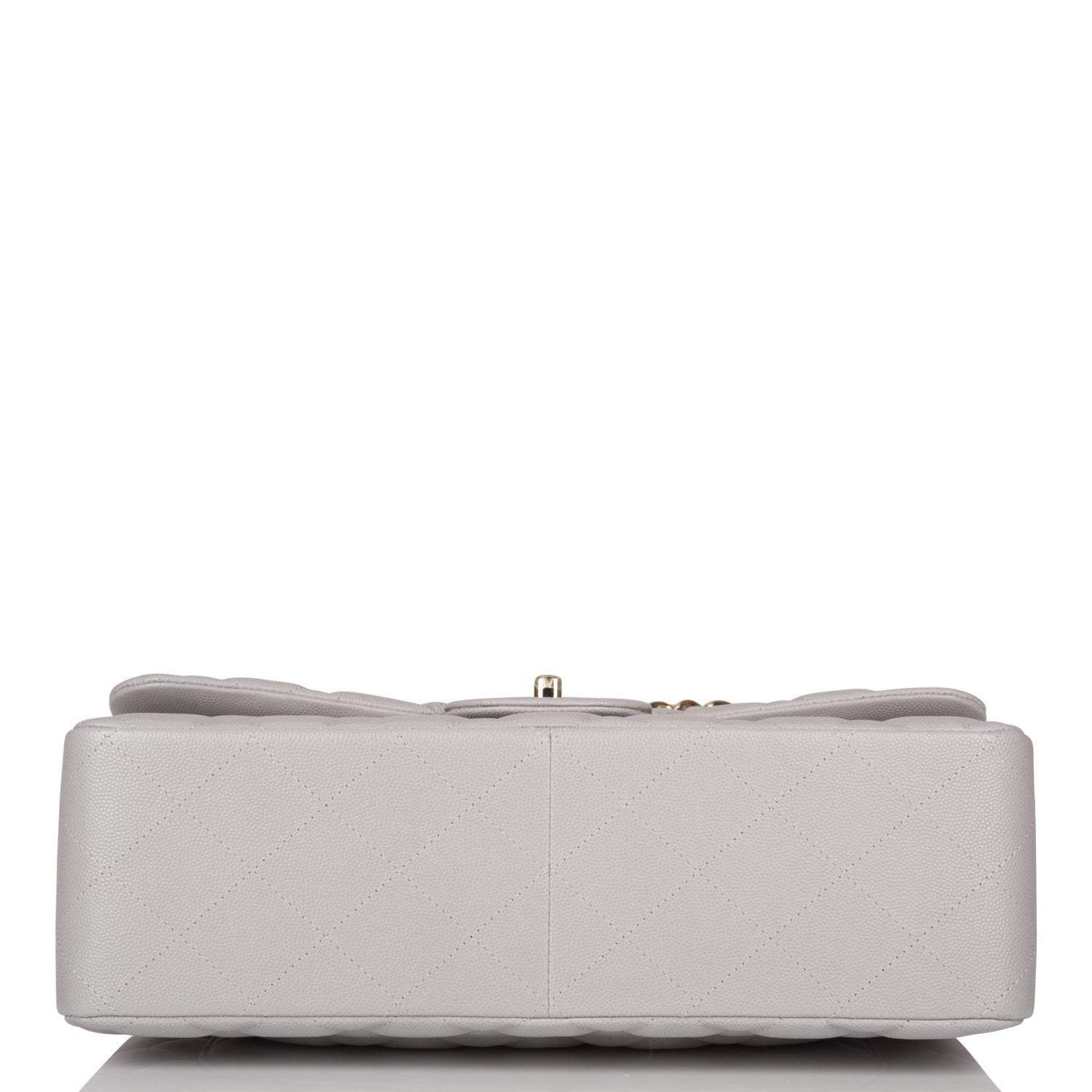 Chanel Light Grey Quilted Caviar Jumbo Classic Double Flap Bag Light Gold Hardware