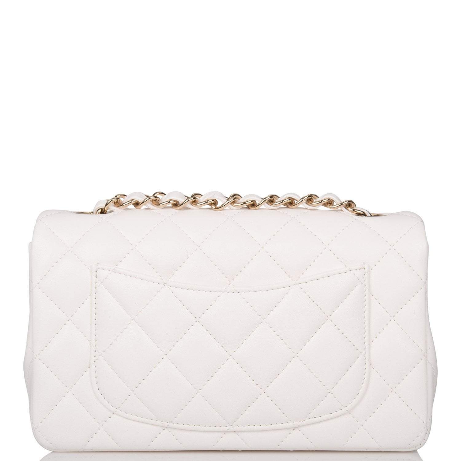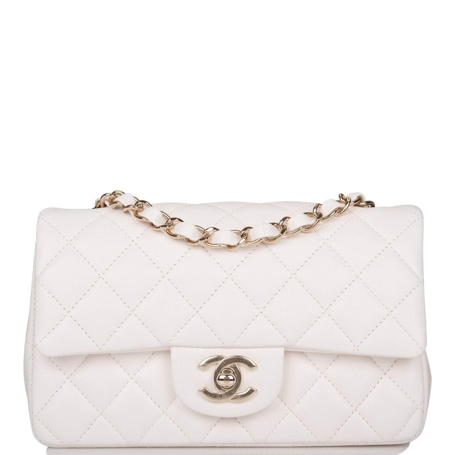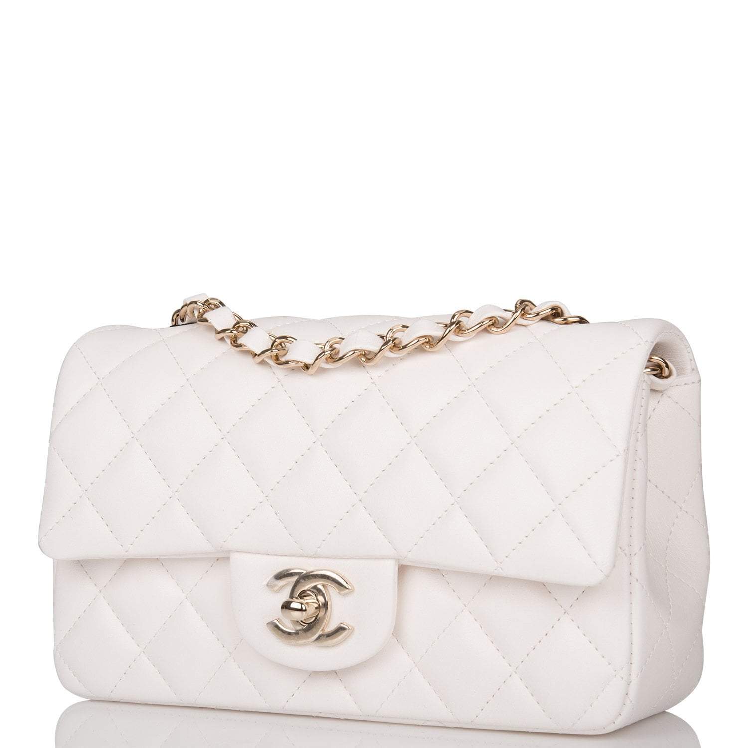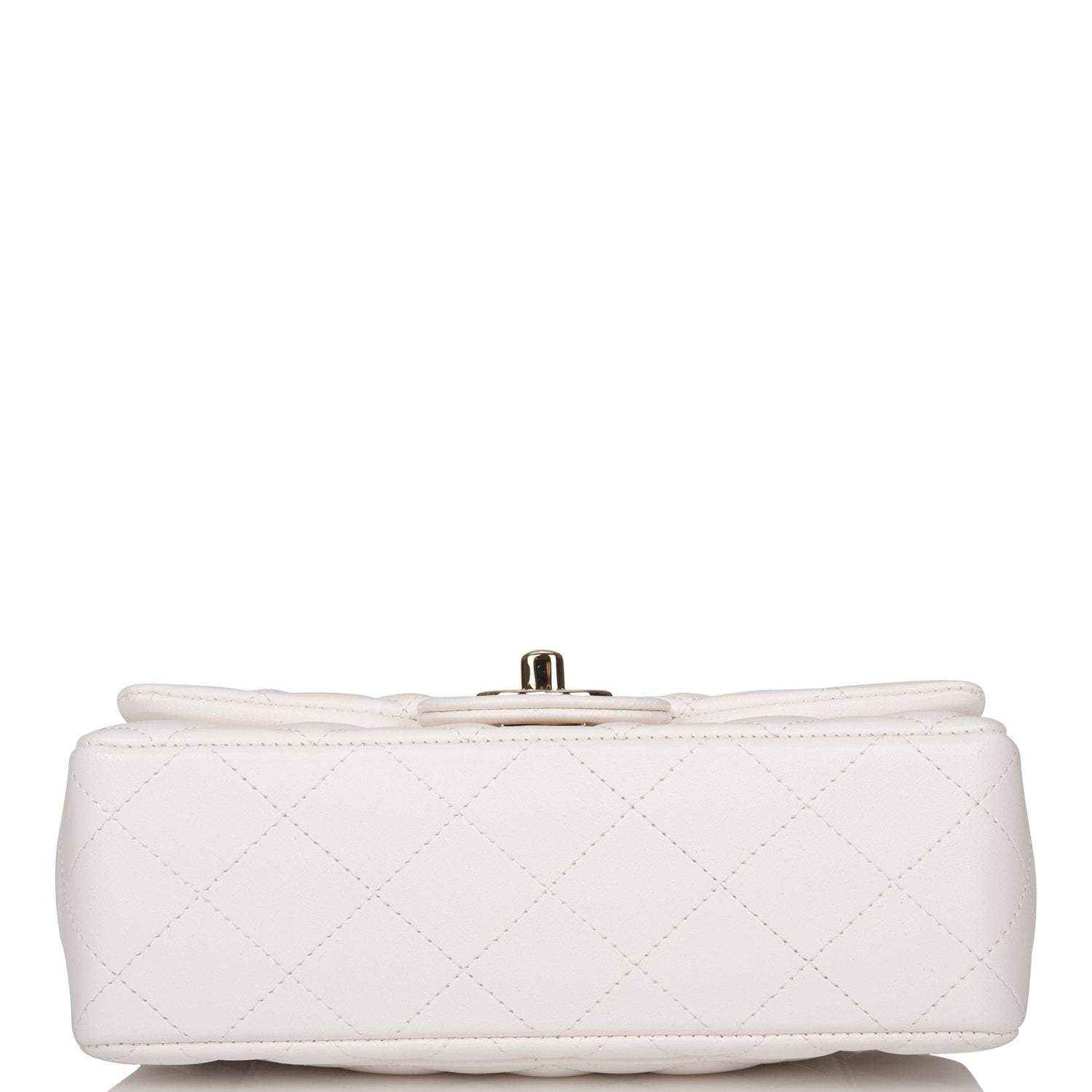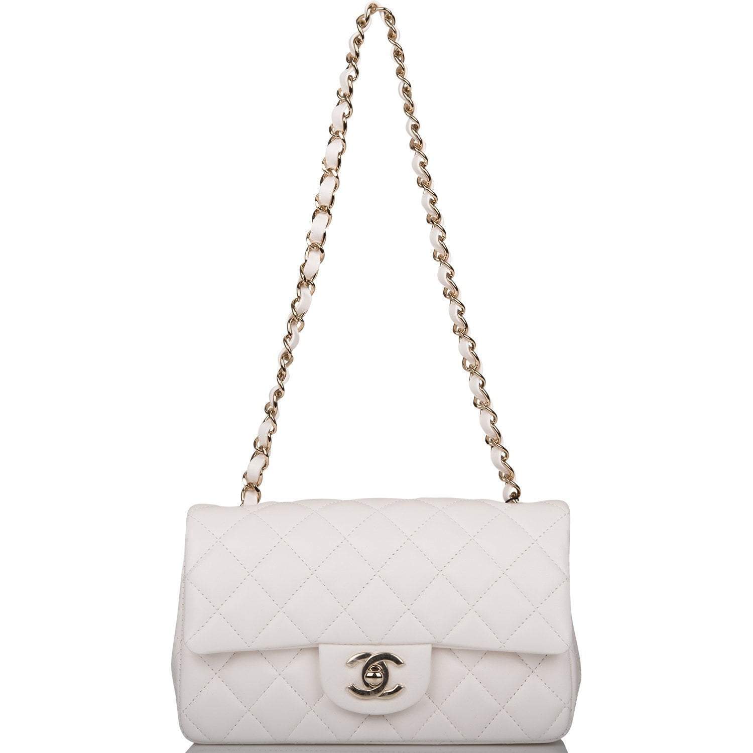 Chanel White Quilted Lambskin Rectangular Mini Classic Flap Bag Light Gold Hardware